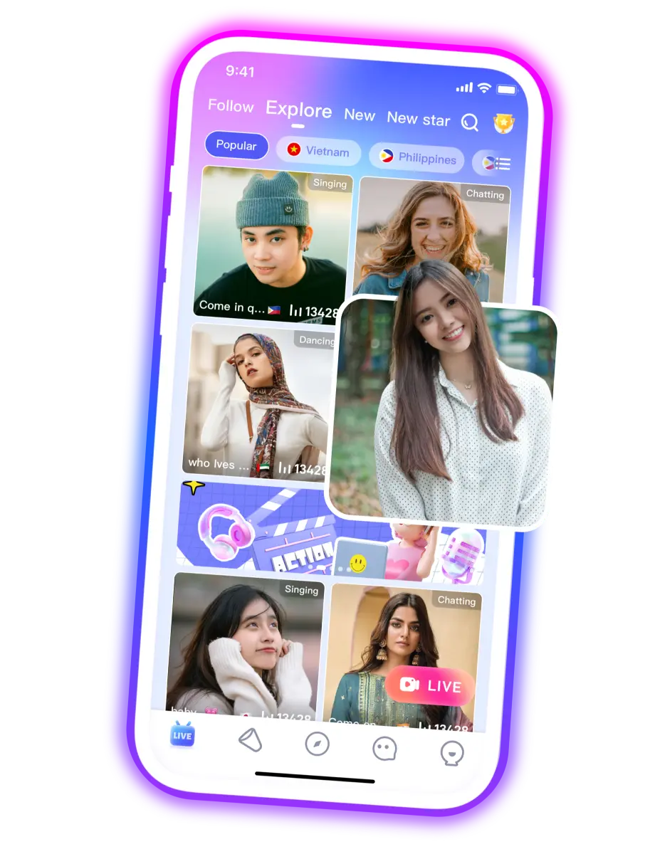 Poppo Live’s Live Feature lets you connect, interact, and share real moments with people worldwide. Whether you’re showcasing your talent, chatting with your audience, or enjoying live entertainment, the platform offers a safe and engaging space to go live anytime. With high-quality streaming, instant interactions, and fun tools, Poppo Live makes every broadcast exciting, helping you build real connections and grow your audience in a friendly community.